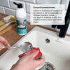 Нанесите небольшое количество на губку или мочалку для мытья посуды, помойте посуду или фрукты и овощи, после чего смойте остатки пены проточной водой
