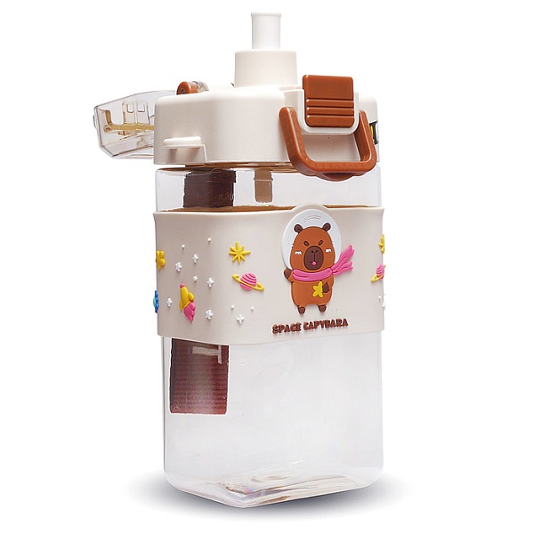 Непроливайка с широким горлышком легко октывается и наплняется любымыми напитками. Удобный замок с кнопкой защищает от случайного пролития. Прозрачная форма бутылки позволяет отслеживать уровень жидкости. Накладка с милым дизайном на бутылке для крепкого и удобного захвата. Легкая прямоугольной формы не займет много места в рюкзаке девочки. Регулируемый ремешок и ручка для еще более удобного ношения поильника.