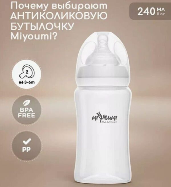 Бутылочка для кормления MiYoumi, 240 мл, White