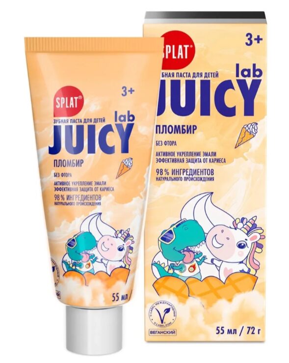 Зубная паста детская СПЛАТ ДЖУСИ ЛАБ создана специально для бережного ухода за зубами и полостью рта. Формула без фтора обеспечивает мягкое и эффективное очищение зубов, помогает защитить от кариеса и реминелизирует эмаль. Приятный вкус «Пломбир» делает процесс чистки зубов увлекательным и комфортным для ребенка, помогая сформировать полезную привычку и поддерживать гигиену полости рта на высоком уровне.