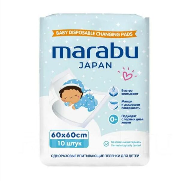 Детские одноразовые впитывающие пеленки MARABU, 60*60 10 шт