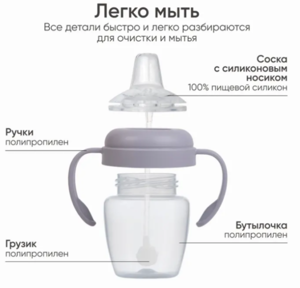 Поильник детский непроливайку легко мыть. Простая конструкция позволяет легко разбирать и мыть поильник, обеспечивая гигиену.
