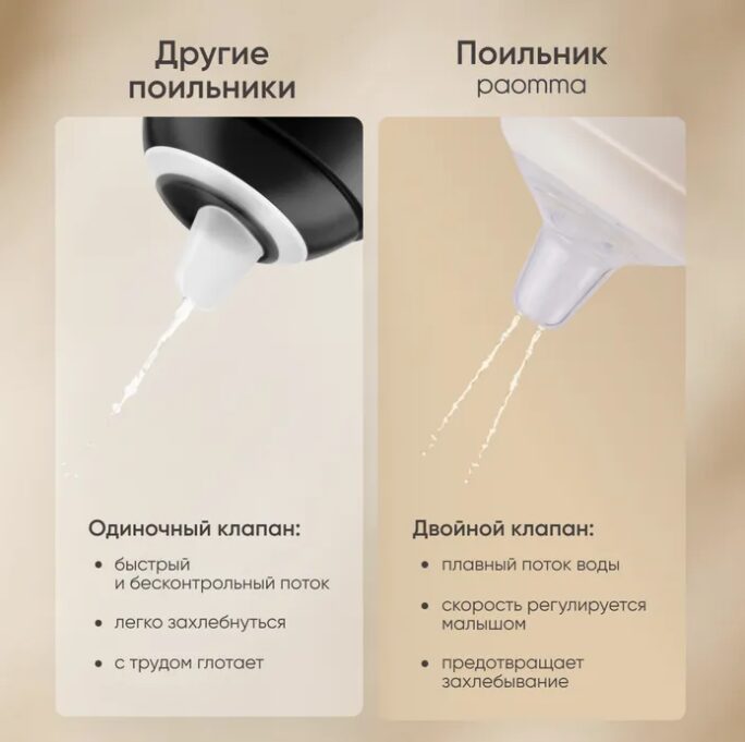 Поильник детский изготовлен из безопасного пищевого пластика без BPA, а мягкий силиконовый носик не травмирует зубы и дёсны. Непроливайка с крышкой имеет двойной клапан, который регулирует поток жидкости, предотвращает проливание и захлебывание. Антиколиковая система внутри поильника непроливайка с соской делает его удобным и безопасным.