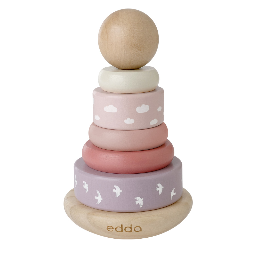 Деревянная пирамидка edda — это эстетика и лаконичный дизайн, сочетающий простые формы и спокойные цвета. Игрушка устойчива в статике, покачивается при небольшом наклоне и возвращается в исходное положение, поэтому малышу весело играть с ней снова и снова. Пирамидка в нежных оттенках помогает малышу развивать координацию, учиться сочетать цвета и органично дополняет интерьер. edda — это поэзия современного детства, где хороший вкус прививается с первых дней жизни.