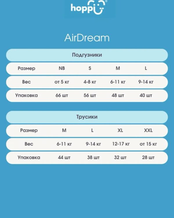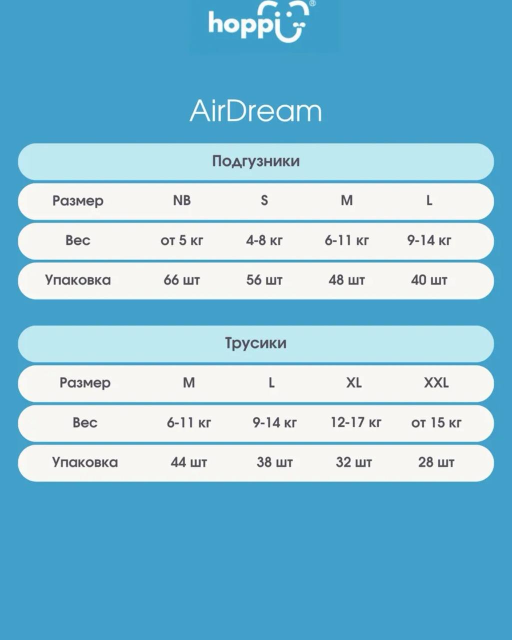 Представьте себе отдых на облаках — именно такие ощущения создают подгузники-трусики Hoppi AirDream для малыша. Подгузники трусы детские размера L разработаны для малышей весом от 9 до 14 кг. Они такие мягкие и тонкие, что малыш едва ли их заметит! Впитывающий слой, произведенный по инновационной технологии UltraCore, состоящий из сильно сжатой 7-слойной структуры, мгновенно поглощает жидкость без комкования. Благодаря двум слоям суперабсорбирующего полимера (SAP) жидкость удерживается внутри до 12 часов без малейшего протекания.