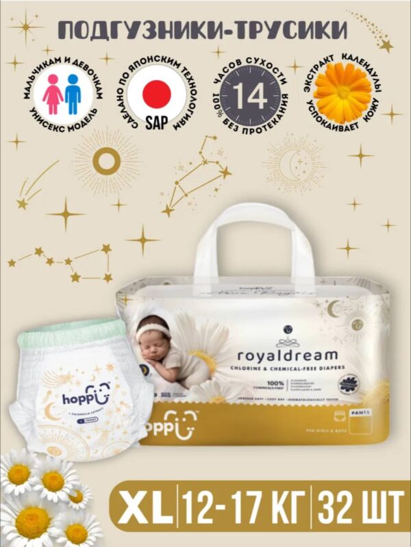 Подгузники трусики детские Hoppi RoyalDream, Размер XL, 12-17кг, 32шт