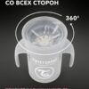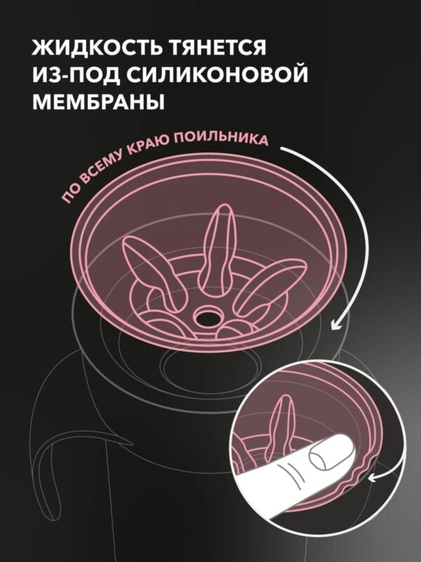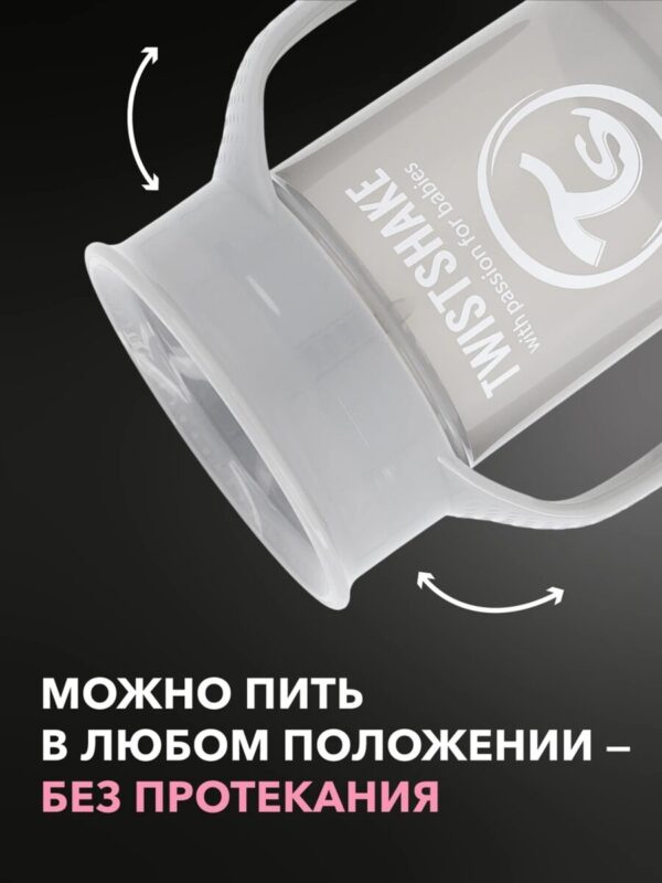 Благодаря системе 360° ребёнок может пить с любого края — жидкость равномерно распределяется под крышкой независимо от угла наклона, что помогает контролировать скорость потока и исключает внезапные проливания в период привыкания.