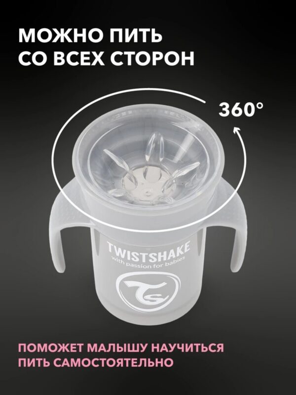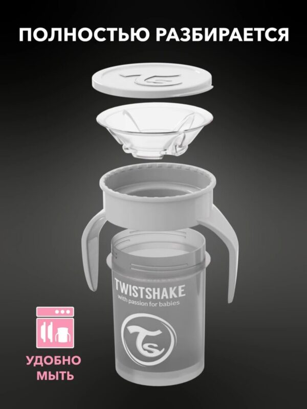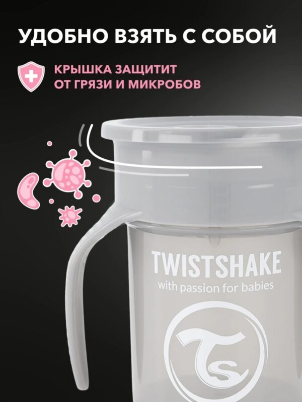Поильник Twistshake 360 cup 230 мл.Пастельный серый,6+ мес