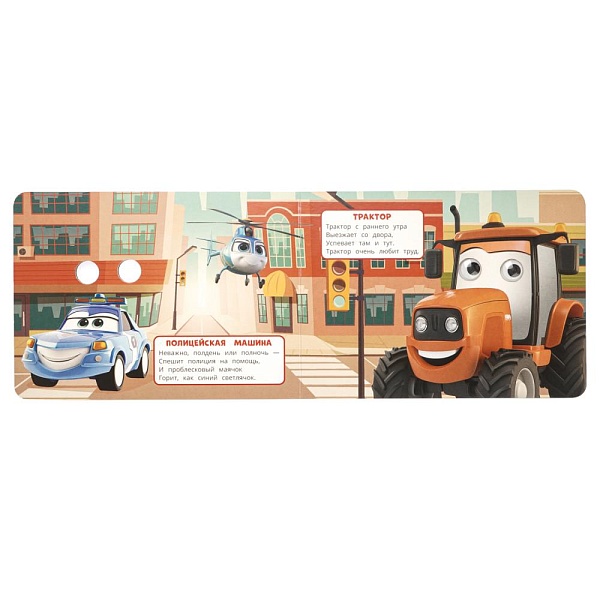 Яркая книга про разные виды транспорта непременно заинтересует ребёнка. Большие яркие картинки, интересные тексты и объёмные глазки, благодаря которым персонажи выглядят совсем как живые, не оставят равнодушным маленького читателя и подарят ему много весёлых и увлекательных минут игры с этой книгой. Компактный размер издания позволяет взять её с собой даже в путешествие.