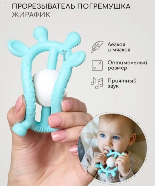 Оригинальный прорезыватель от Miyoumi Прорезыватель для зубов — погремушка игрушка Жирафик и грызунок прорезыватель.Прорезыватель Жираф поможет вашему малышу справится с нелегким периодом появления зубов.Прорезыватель зубов легкий. Малыш хорошо удержит его в своих маленьких ручках. Мягкая структура силикона делает прорезыватель для новорожденных безопасным и приятным в применении.Грызунки детские изготовлены в разных цветах. Цветовая гамма привлечет внимание ребенка. Если с ребенком трудно в период прорезывания зубов рекомендуем использовать наши прорезыватели детские. Их поверхность рифленая, ребенок с удовольствием воспользуется ею, чтобы успокоить свои десны. Прорезыватель для десен изготовлен из безопасного пищевого силикона и входит в список игрушек для новорожденных с 0. Прорезыватель Жирафик станет любимой игрушкой для малыша, а также его можно приобрести, как подарок новорожденному или включить в набор на выписку для новорожденного.