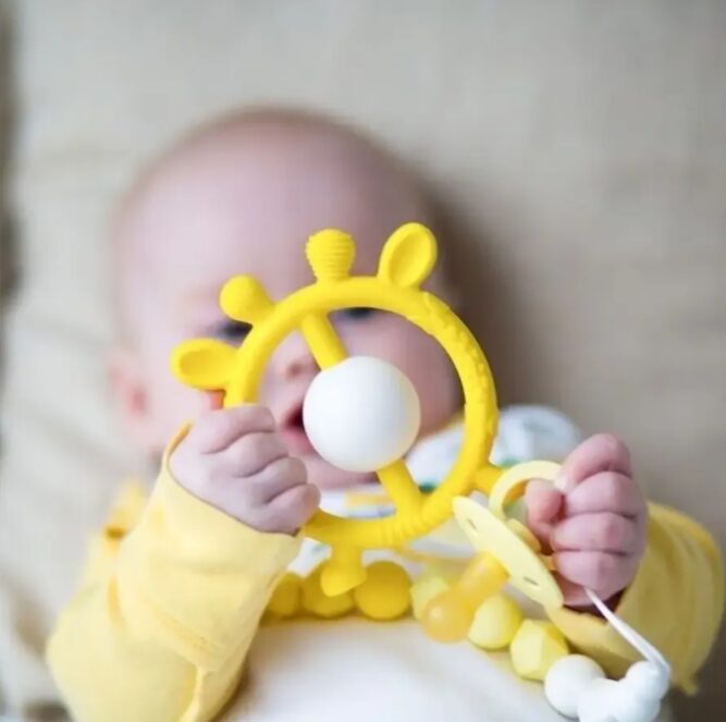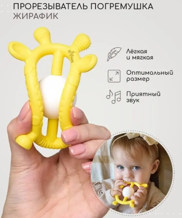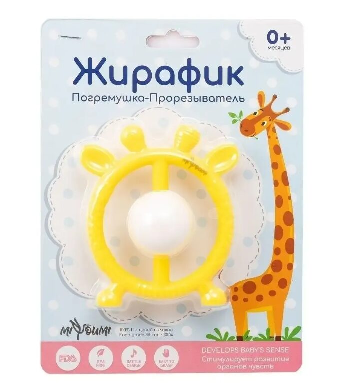 Оригинальный прорезыватель от MiyoumiПрорезыватель для зубов — погремушка игрушка Жирафик и грызунок прорезыватель.Прорезыватель Жираф поможет вашему малышу справится с нелегким периодом появления зубов.Прорезыватель зубов легкий. Малыш хорошо удержит его в своих маленьких ручках. Мягкая структура силикона делает прорезыватель для новорожденных безопасным и приятным в применении.Грызунки детские изготовлены в разных цветах. Цветовая гамма привлечет внимание ребенка. Если с ребенком трудно в период прорезывания зубов рекомендуем использовать наши прорезыватели детские. Их поверхность рифленая, ребенок с удовольствием воспользуется ею, чтобы успокоить свои десны. Прорезыватель для десен изготовлен из безопасного пищевого силикона и входит в список игрушек для новорожденных с 0. Прорезыватель Жирафик станет любимой игрушкой для малыша, а также его можно приобрести, как подарок новорожденному или включить в набор на выписку для новорожденного.