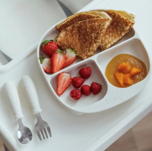 Силиконовая секционная тарелка на присоске+приборы, MiYoumi/ Ivory
