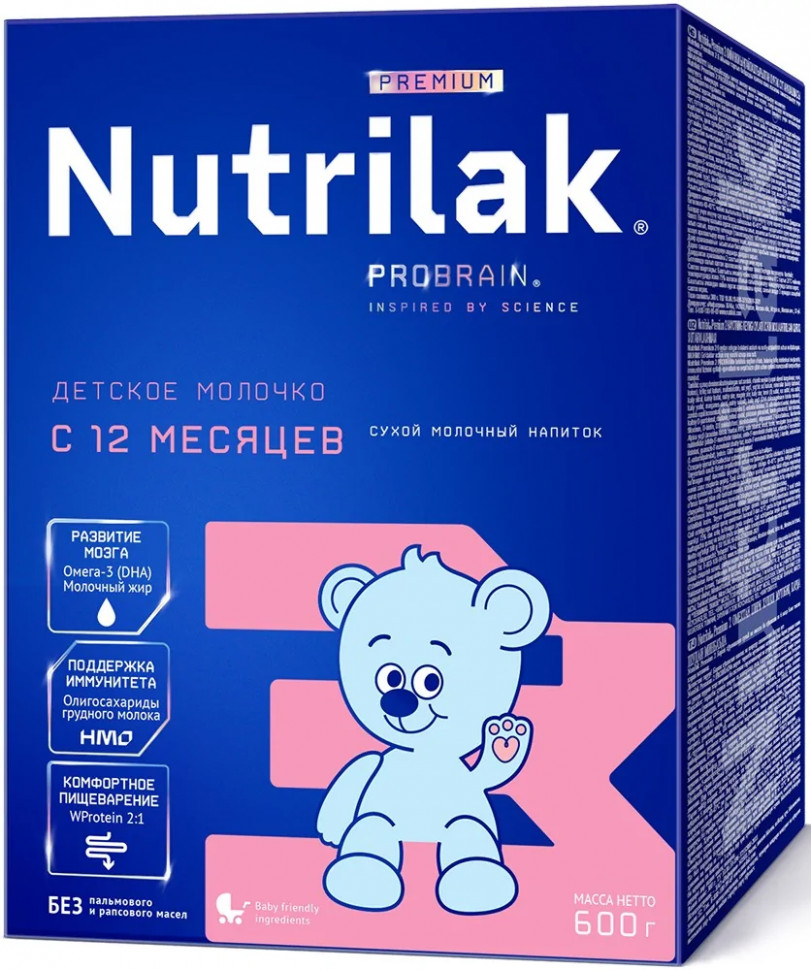 Детский молочный напиток Nutrilak Premium 3 подходит для дополнительного здорового питания детей старше 1 года.