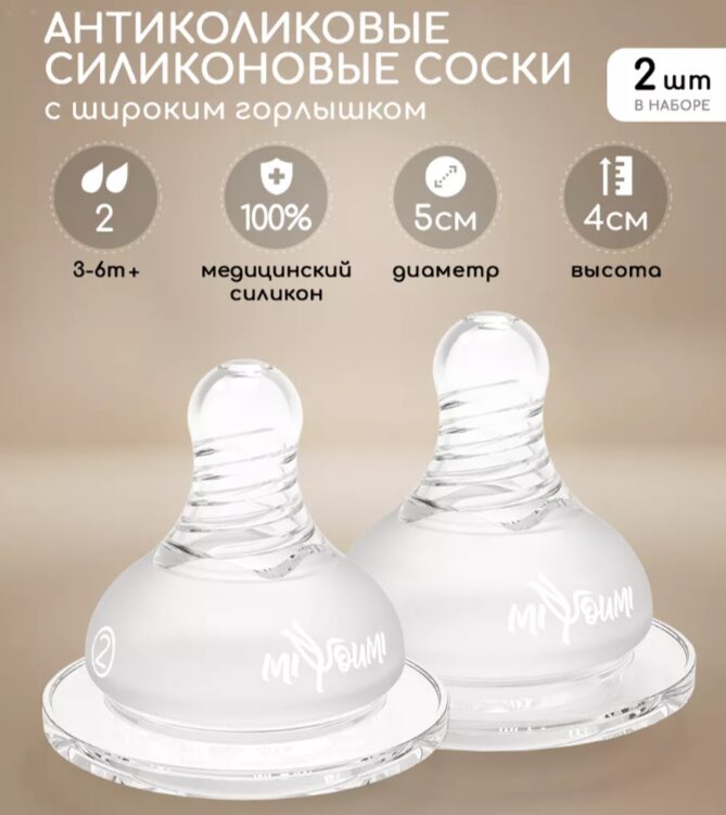 Соска для бутылочки MiYoumi, 2 шт, 3-6 мес+