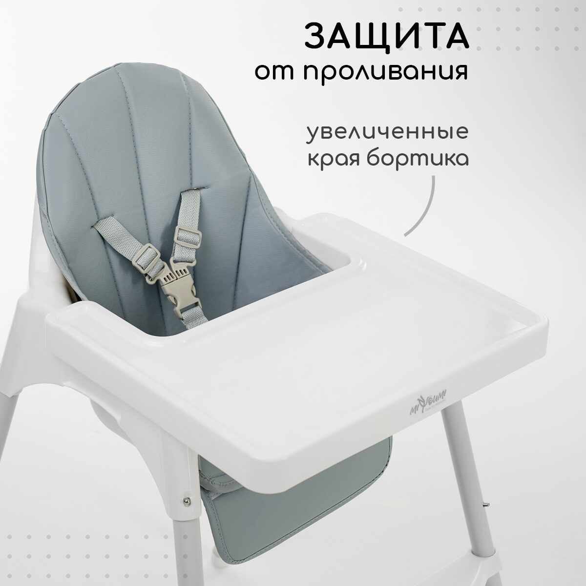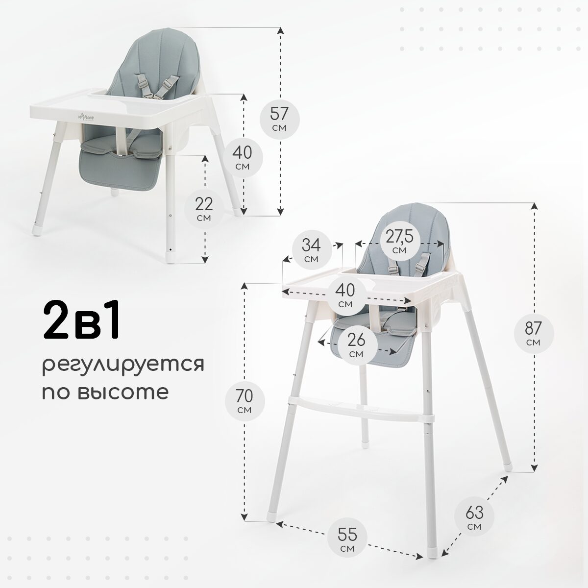 Стульчик изготовлен из abs-пластика и нержавеющей стали, выдерживает до 15 кг. Имеет чехол из влагостойкой экокожи, надежный ремень безопасности, съёмную столещницу. Благодаря своей эргономичной конструкции, обеспечивает правильную позицию для ребенка во время приема пищи. Оснащен удобным столиком, который идеально подходит для размещения посуды и кормления ребенка. Его можно легко установить и удалить после еды. «