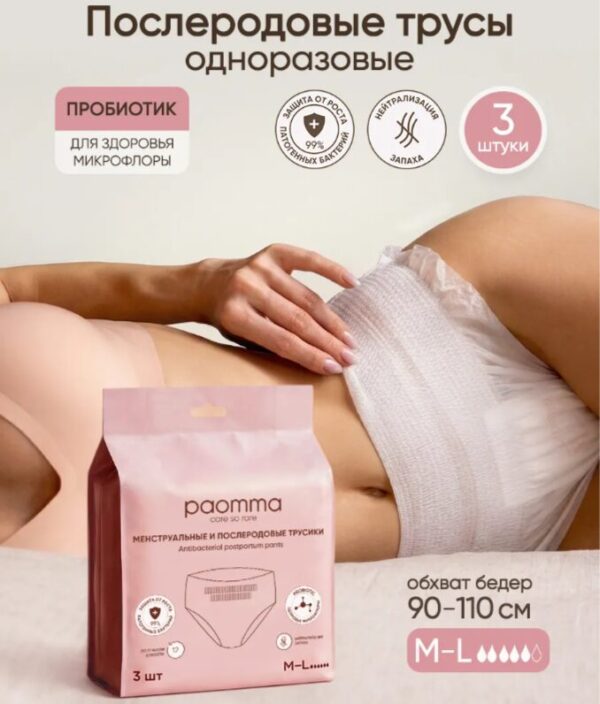 Трусы послеродовые, менструальные Paomma M-L (90-110) 3 шт