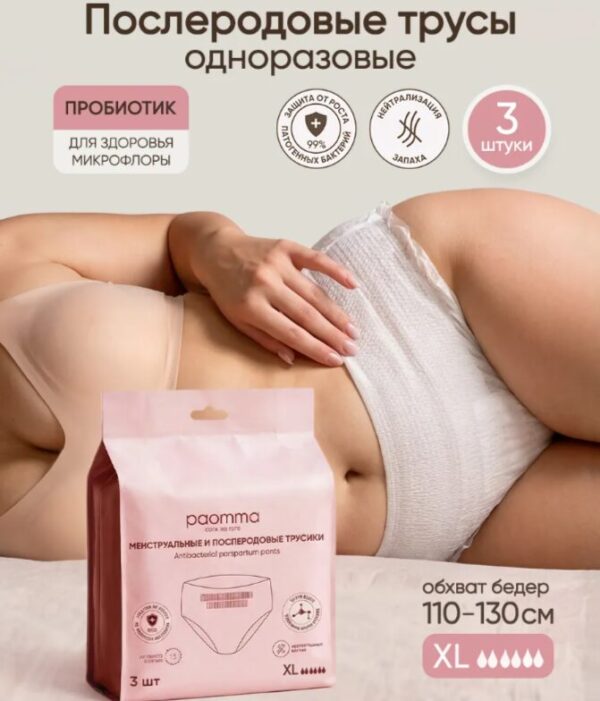 Трусы послеродовые, менструальные Paomma XL (110-130) 3 шт