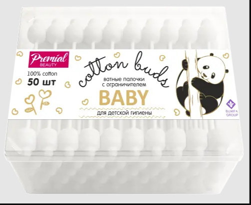 PREMIAL ПАЛОЧКИ ВАТНЫЕ ДЛЯ ДЕТСКОЙ ГИГИЕНЫ /КОРОБКА — для бережного и безопасного очищения и ухода за нежной кожей малыша.
