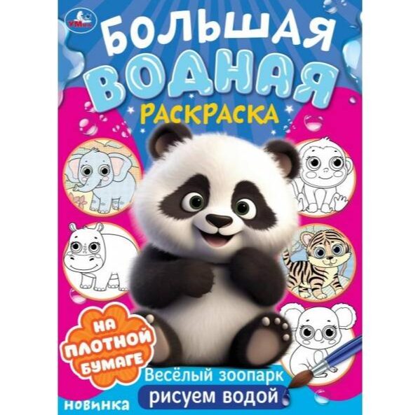 Большая водная раскраска «Весёлый зоопарк» из серии «Рисуем водой» ТМ «УМка» обязательно понравится маленькому художнику: